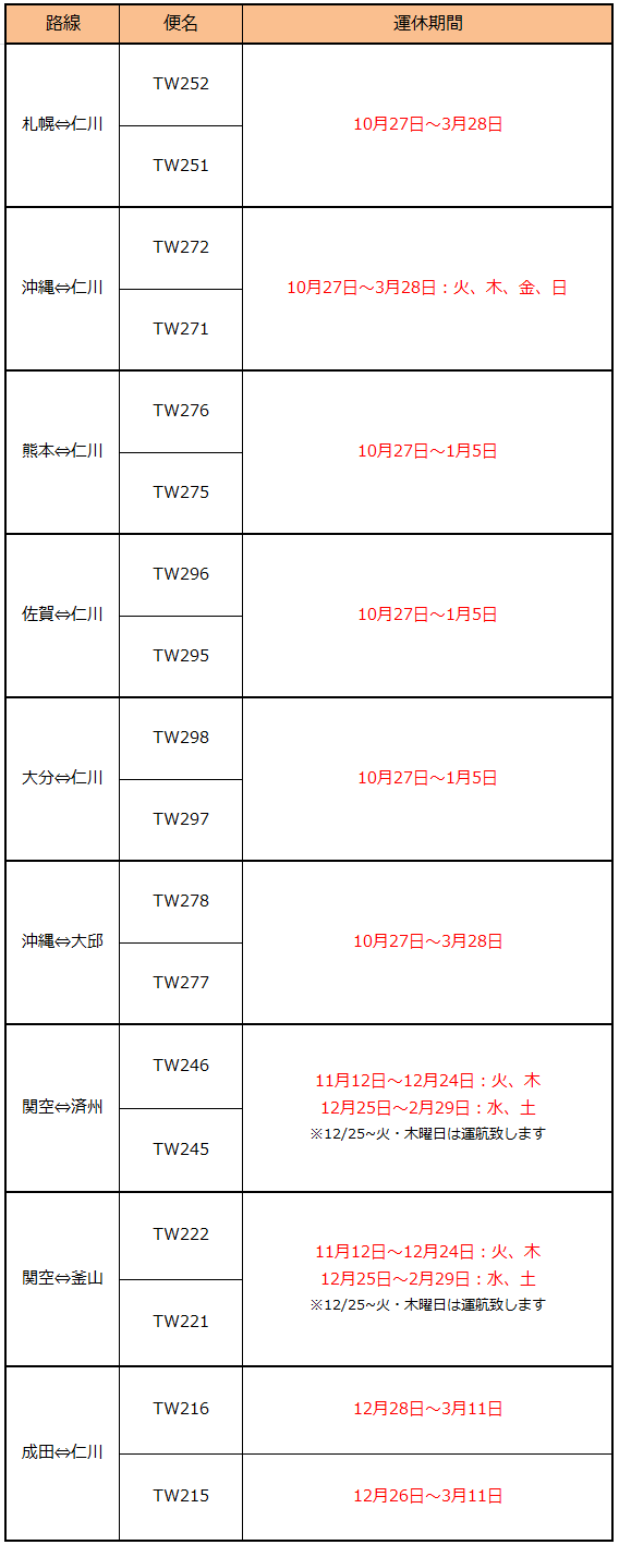 下記の通り、一部日韓路線を運休致しますことをお知らせいたします。