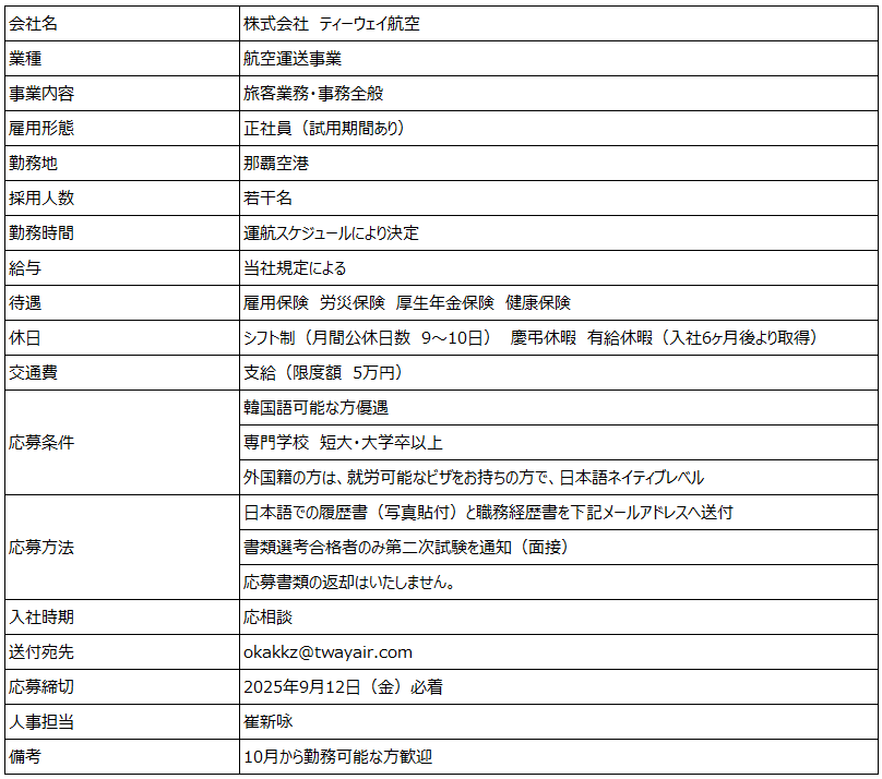 [일반]<採用情報>那覇空港スタッフ募集