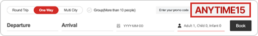 - Please note that there may be cases when the promotion code is not applied during the boarding period for each route depending on the sales policy.