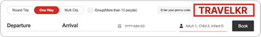 - Please note that there may be cases when the promotion code is not applied during the boarding period for each route depending on the sales policy.