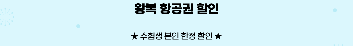 - 일부 항공편에서 수능 할인 적용 시보다 낮은 탄력적 할인 운임으로 판매되는 경우가 발생할 수 있으니 참고바랍니다.