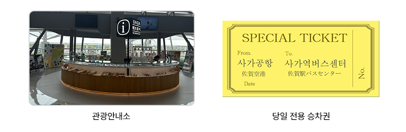 - 버스 탑승 시, 사가공항 관광안내소에서 수령한 탑승권을 제시하여 주시기 바랍니다.