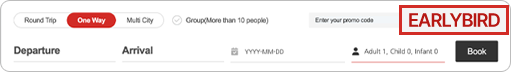 - Please note that there may be cases when the promotion code is not applied during the boarding period for each route depending on the sales policy.