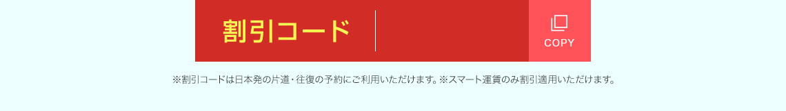 - 割引コードは小児、幼児運賃にはご利用いただけません。