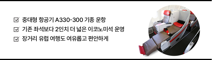 - 기존 좌석보다 2인치 더 넓은 이코노미석 운영