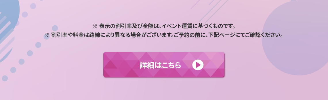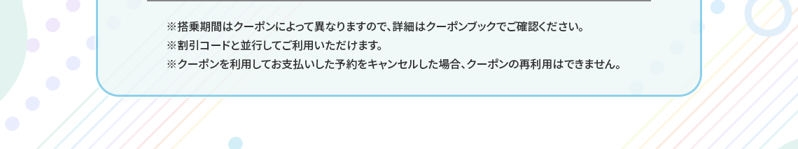 - 一部期間および運賃には割引コードがご利用できない場合がございます。