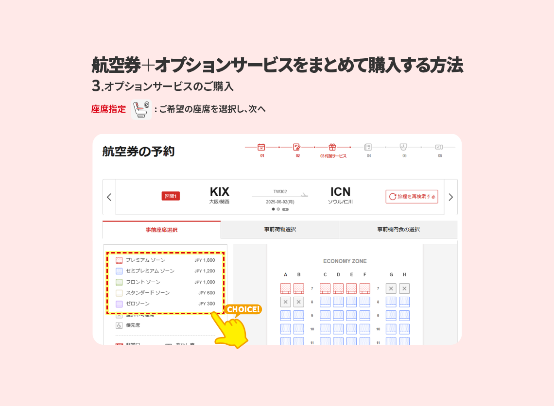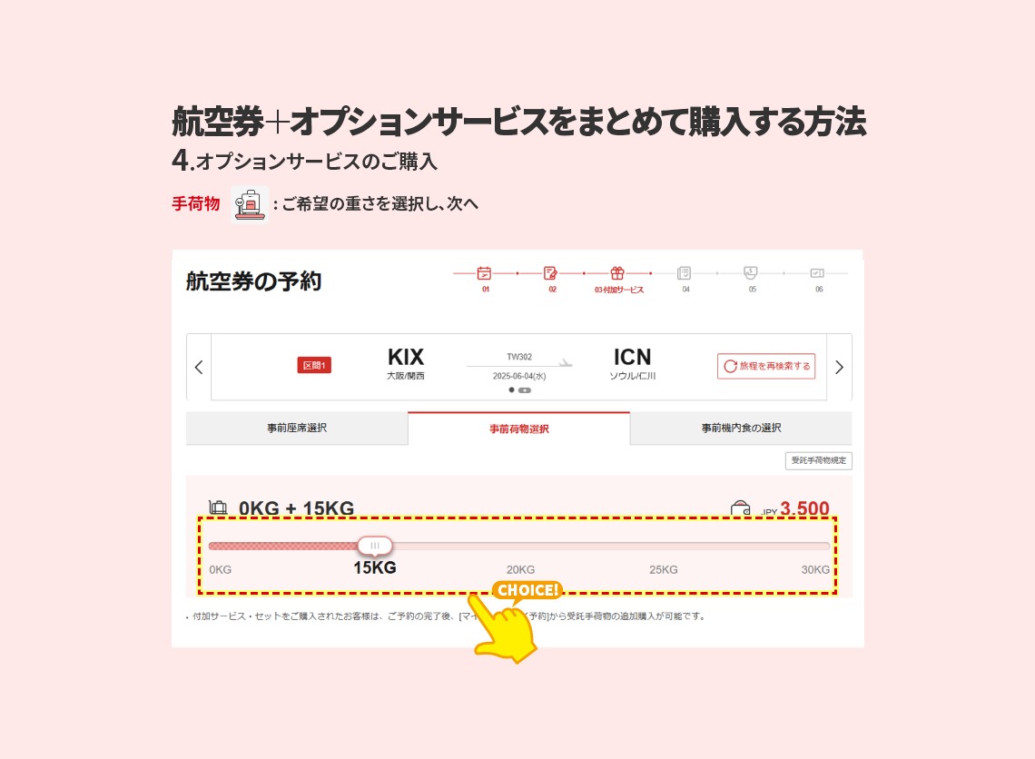 - 当社ホームページ、モバイルウェブ(m.twayair.com)、モバイルアプリを通じてのみ予約可能です。