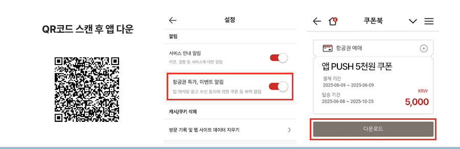 [설정] >‘항공권 특가/이벤트 알림‘ ON