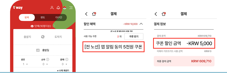 - 쿠폰은 티웨이항공 앱 ‘항공권 특가 알림’ 수신에 동의한 회원에 한해 다운 및 사용 가능합니다.