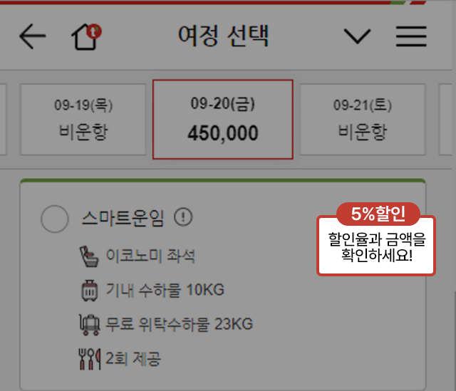 | 할인율 | 5% (편도에서 적용 가능) |