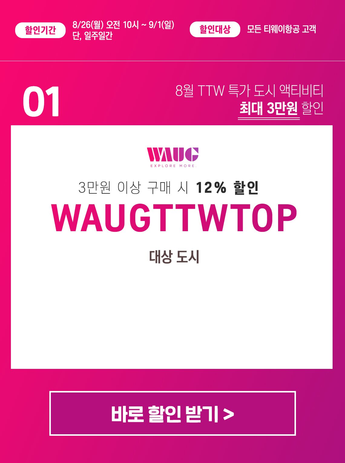 - 본 쿠폰코드는 와그 홈페이지에서 액티비티 구매 시 사용할 수 있습니다.