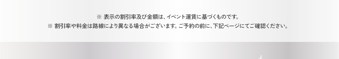 - 一部期間および運賃には割引コードがご利用できない場合がございます。