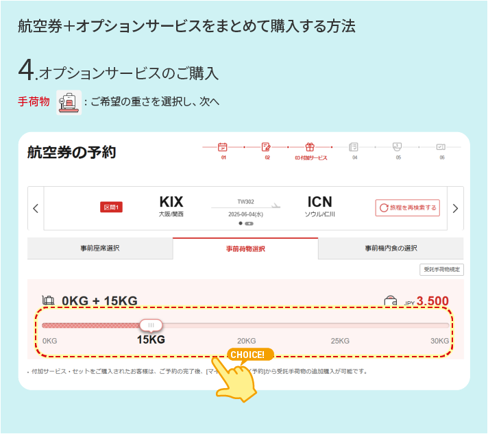 - 当社ホームページ、モバイルウェブ(m.twayair.com)、モバイルアプリを通じてのみ予約可能です。