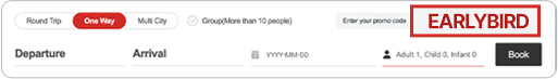 - Please note that there may be cases when the promotion code is not applied during the boarding period for each route depending on the sales policy.