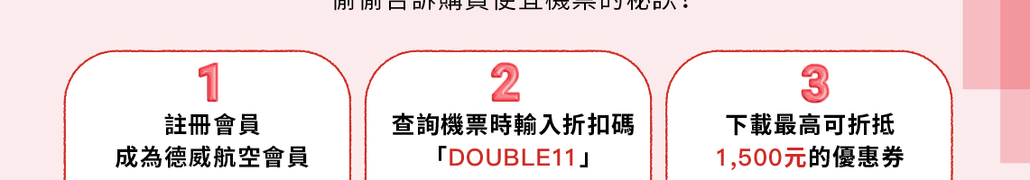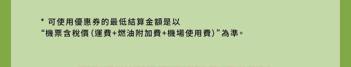 - 取消使用優惠券結算的預訂時,優惠券無法恢復。(機票/行李優惠券均適用)
