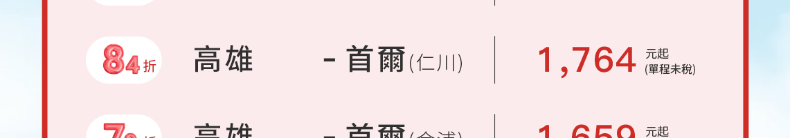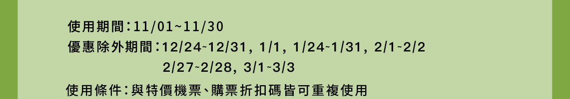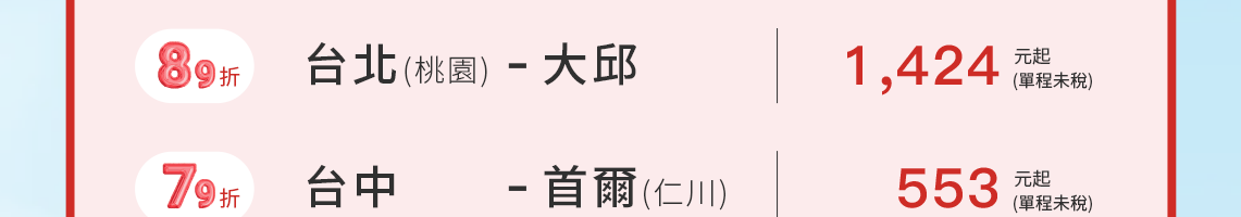 - 根據營業政策,各路線搭乘的期間可能會有無法使用該優惠的日期,敬請見諒。