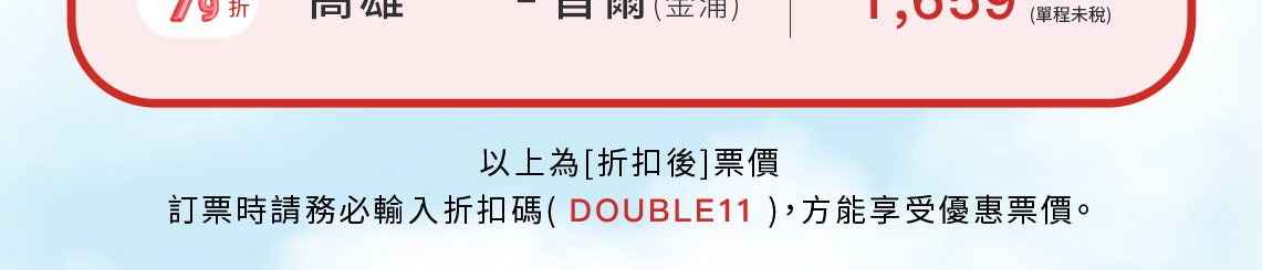 - 特價機票首次開放的時間是2024年11月1日上午9點,依先後順序限量銷售。