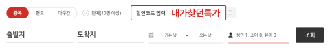 01항공권 예매 창에 할인코드 입력 후, 항공권 조회
