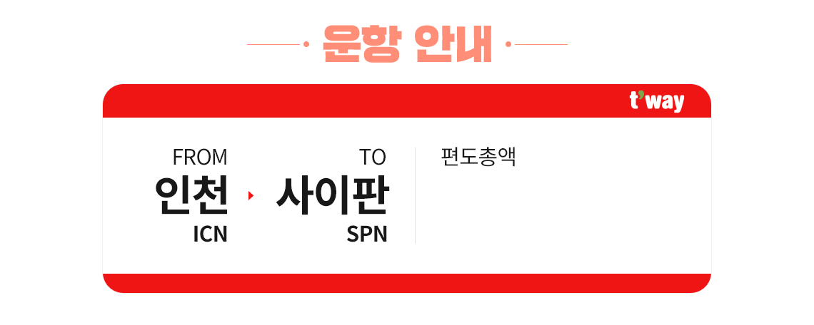 | 사이판 - 인천(TW308) | 03:15 | 07:00 |