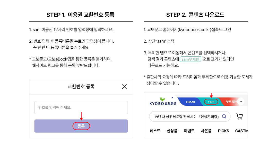 - 혜택: 월별 선착순 3천명에게 교보문고 sam무제한 14일 이용권