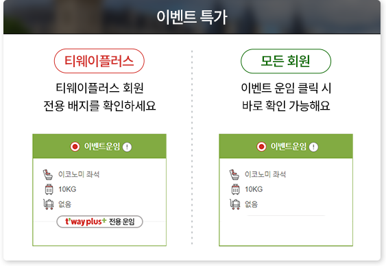 - 모든 회원 : 이벤트 운임 클릭 시 바로 확인 가능해요