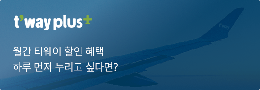 - 이벤트 기간 내 티웨이항공 회원가입 및 티웨이플러스 구독이 원활하지 않을 수 있으니, 이벤트 이전에 회원가입 및 구독을 권장드립니다.