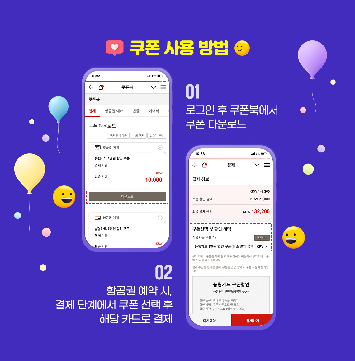 - 타 쿠폰, 신분 할인, 공동 운항, 단체 항공권 예약 시 적용 불가