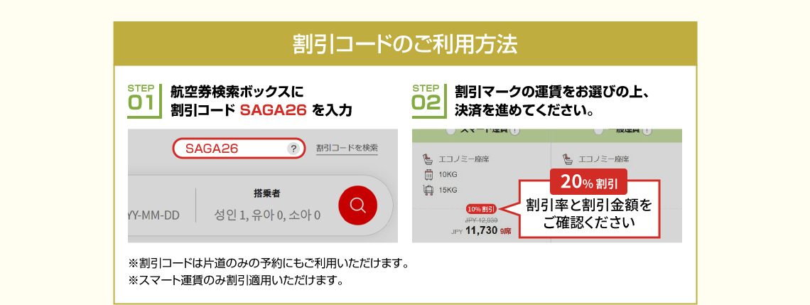 - 割引コードはスマート運賃のみご利用いただけます。