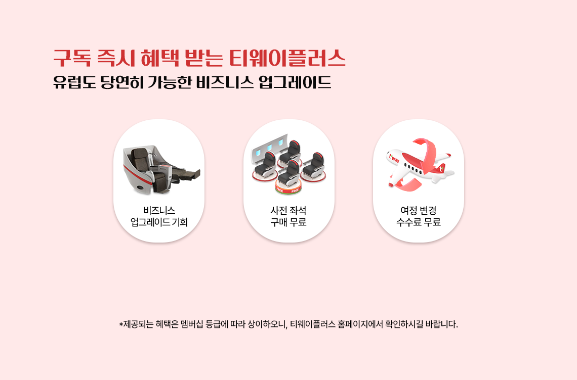 - 당사 홈페이지, 모바일 웹(m.twayair.com), 모바일 앱을 통해서만 예매 가능합니다.