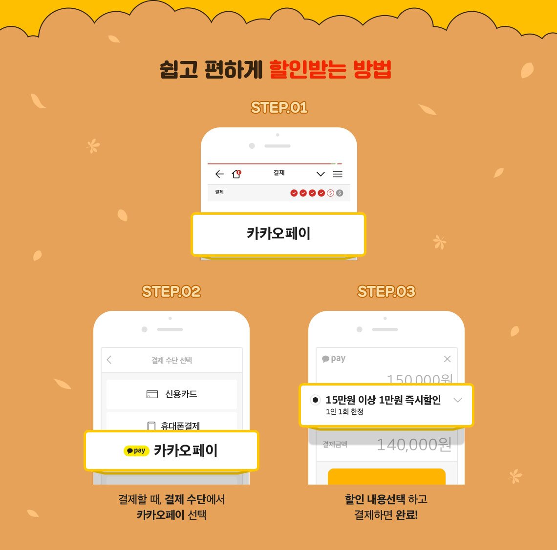 15만원 이상 카카오페이로 결제 시 1만원 추가 할인