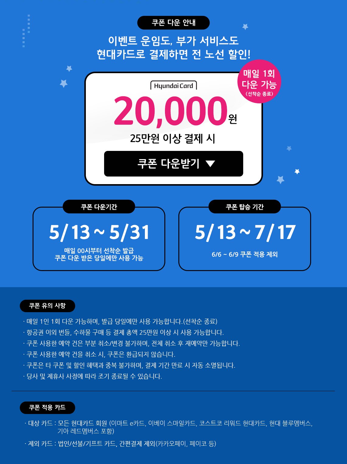 - 이벤트 운임 포함 총 25만원 이상 결제 시 2만원 할인 적용됩니다.