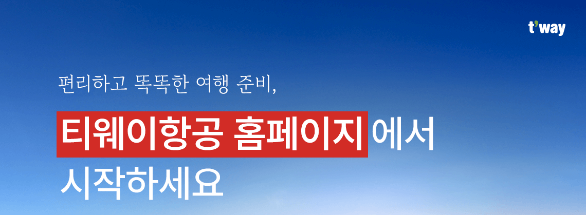편리하고 똑똑한 여행 준비, 티웨이항공 홈페이지에서 시작하세요