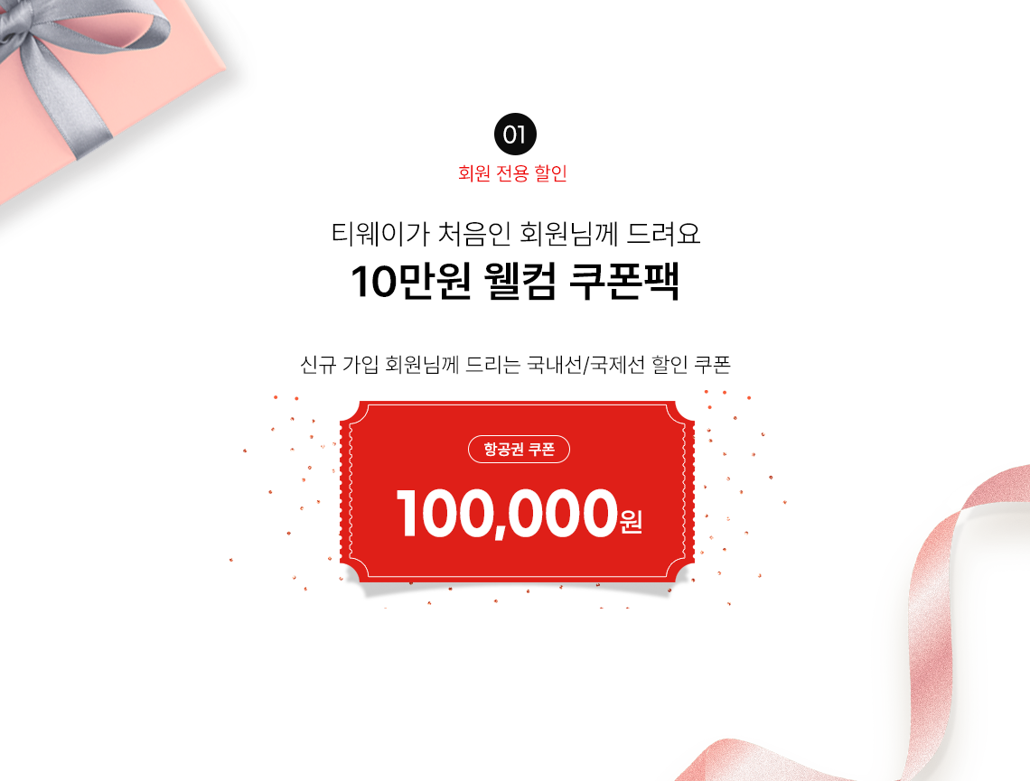 신규 가입 회원님께 드리는 국내선/국제선 할인 쿠폰 (항공권 쿠폰) - 100,000원