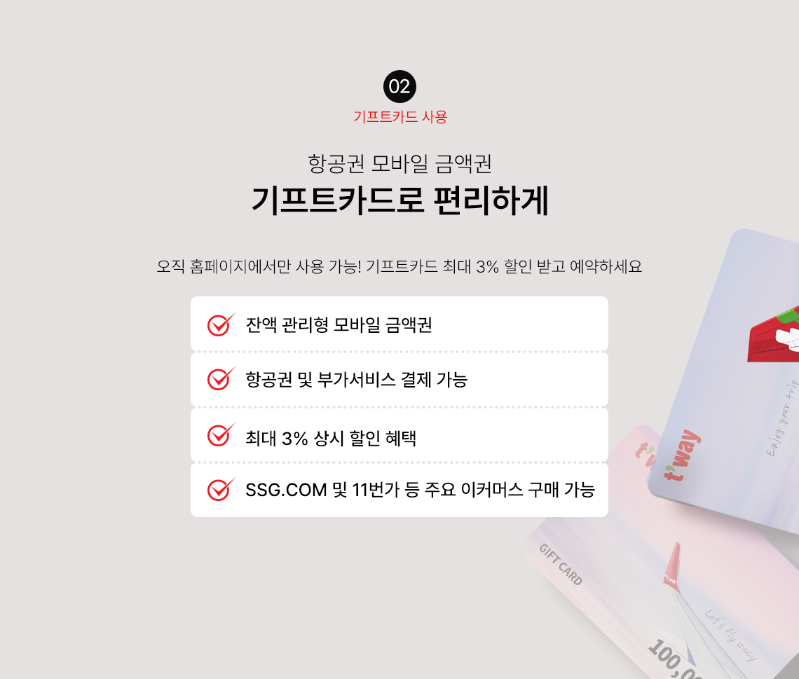오직 홈페이지에서만 사용 가능! 기프트카드 최대 3% 할인 받고 예약하세요- 잔액 관리형 모바일 금액권