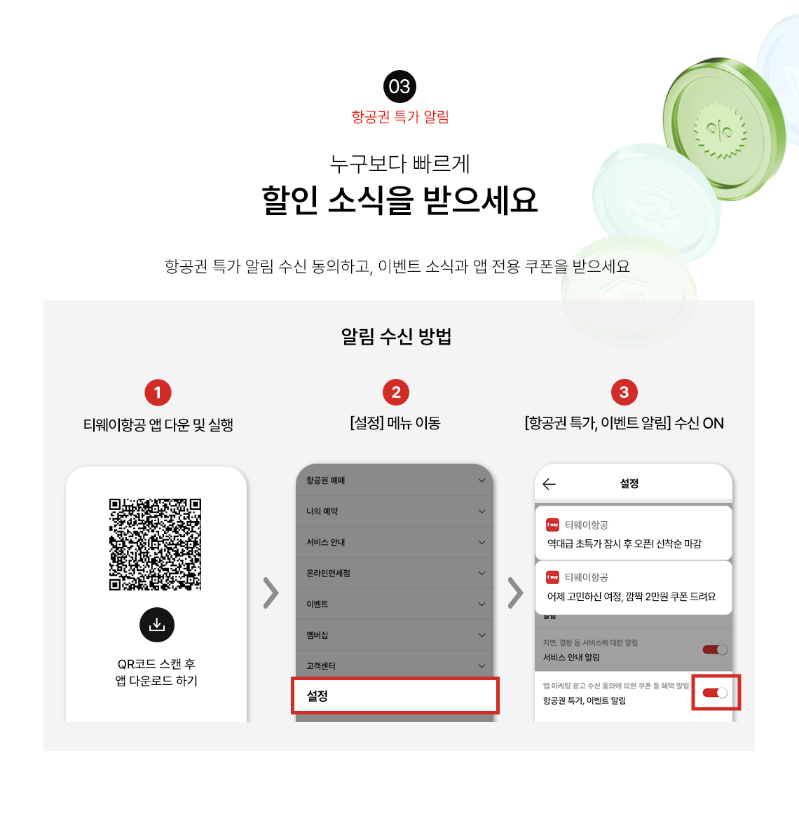 - 3. [항공권 특가, 이벤트 알림] 수신 ON