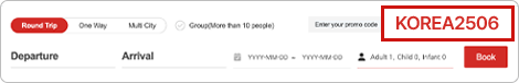 01Enter the promo code 'KOREA2506' and click 'book'