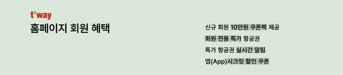 - 당사 홈페이지, 모바일 웹(m.twayair.com), 모바일 앱을 통해서만 예매 가능합니다.