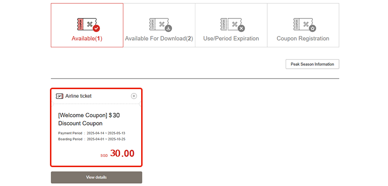 - After the expiration date, coupons will be automatically invalidated. - Applicable period for boarding: