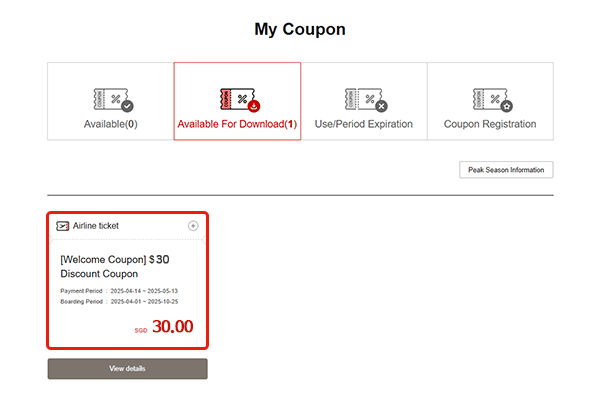 - Automatically issued upon completion of new registration and can be confirmed in [My Page > My Coupons]. - Coupon validity period: