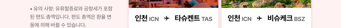 - • 할인 노선 : 인천-타슈켄트 / 비슈케크