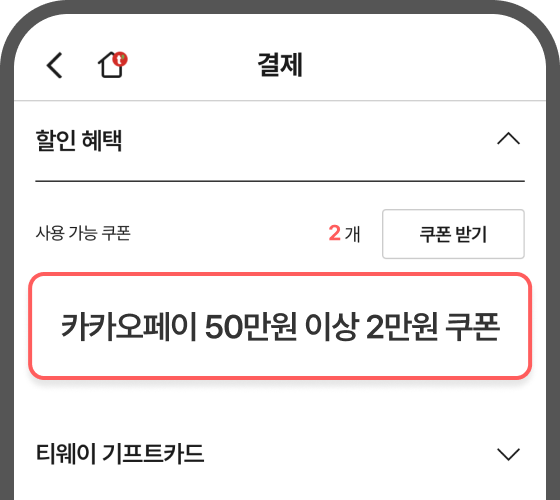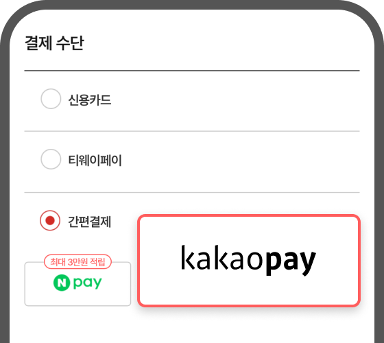 - 카카오페이 결제기준 최종 결제금액에 할인이 적용됩니다.