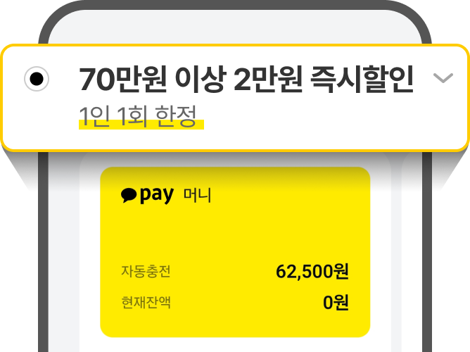 - 카카오페이 즉시 할인은 선착순으로 제공되며, 할인 한도 소진 시 별도 안내 없이 조기 종료될 수 있습니다.