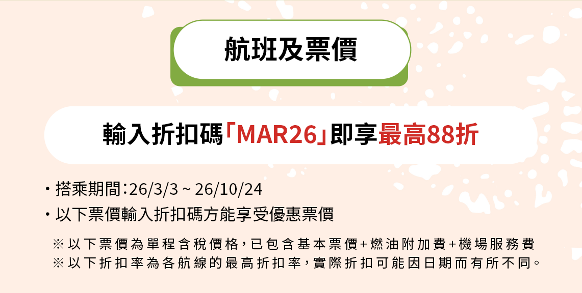 - 特價機票首次開放的時間是2026年3月3日上午9點,依先後順序限量銷售。