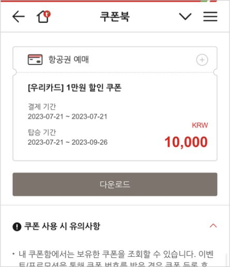 - 타 쿠폰, 신분 할인, 공동 운항, 단체 항공권 예약 시 적용할 수 없습니다.