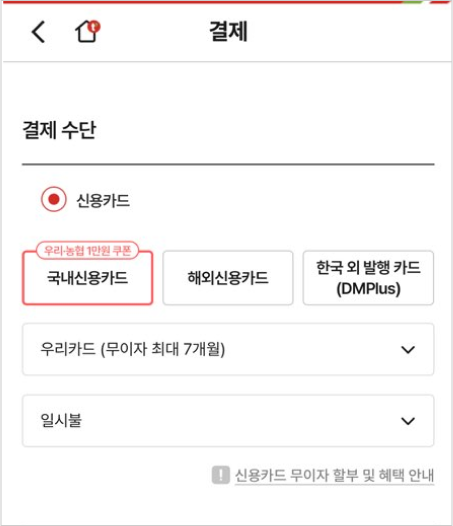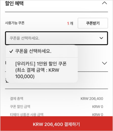 - 쿠폰은 결제 카드에 따라 1회만 적용 가능합니다.