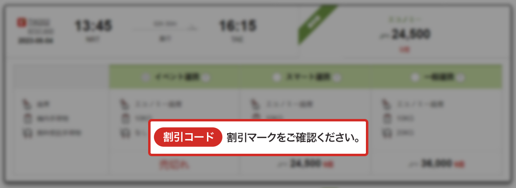 - 一部期間および運賃には割引コードがご利用できない場合がございます。
