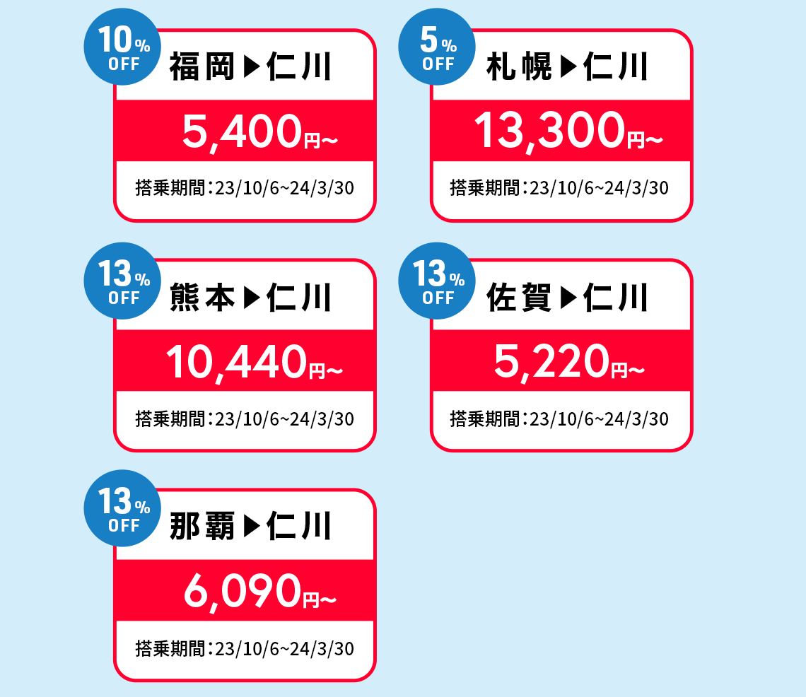 搭乗期間:23/10/6~24/3/30 6,090円〜