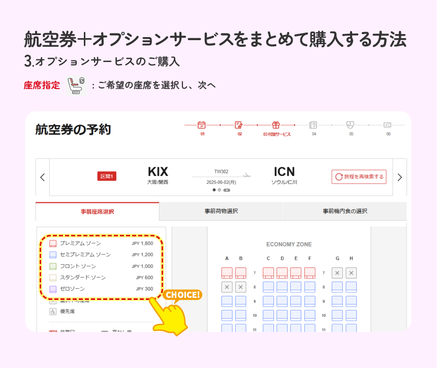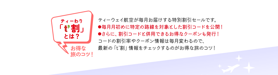 - 当社ホームページ、モバイルウェブ(m.twayair.com)、モバイルアプリを通じてのみ予約可能です。