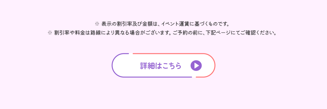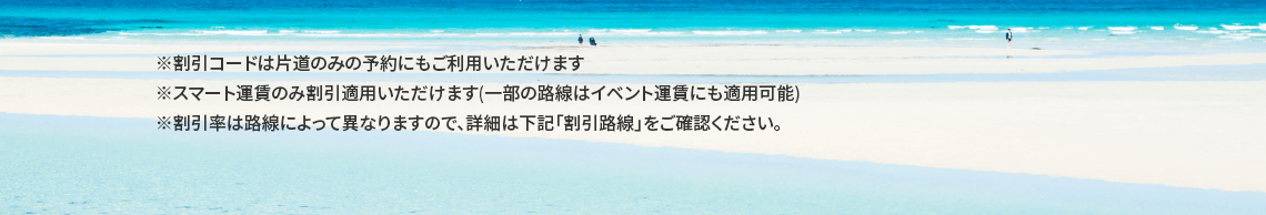 - 割引コードはスマート運賃のみご利用いただけます。(ただし、一部の路線はイベント運賃にも適用可能)