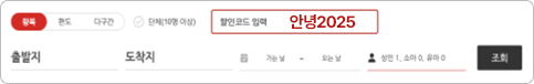 - 할인코드는 편도/왕복 예매 시 모두 사용 가능합니다.